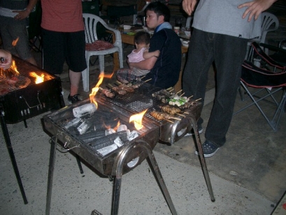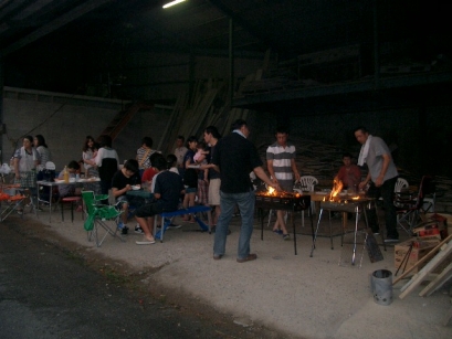 先日、近所の青年の皆様が納涼焼肉大会をを開催するとのことで、バーベキュー用にモミガライトと、雨が降ったので倉庫を提供させて頂きました。