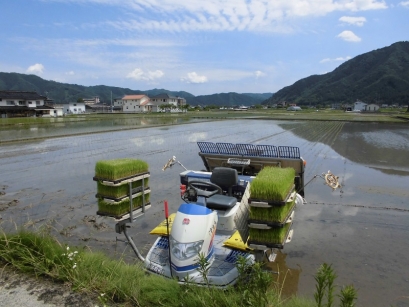 今年の田植えは「プチ密苗」仕様(笑)です。田植え機は10年以上使用したイセキの「さなえ」ちゃんです。まず、爪を「プチ密苗」仕様に交換。送りを標準(24)から(28)に変更し苗取量は最小、株数は(37)で植えてみました。すると、10a当たり約6箱位で植わります。当初の予定では10a当たり10箱でした。去年まではすべて標準、株数42で10a当たり12~13箱だったので約半分になりました!しかし、株数37だと見た目が悪い!ので42に変更、苗取量も一段上げました。(プチ密苗仕様に改造後は苗取量は「少」か「多」の二段階しかありません。) 変更後は10a当たり約7~8箱になりました。これだと、播種作業、その後の箱並べ作業(これがきついw)がかなり楽になります!ただ、密植になるので、播種後30日を超えた辺りから急に色が悪くなってきます。田植えする日をよく検討してから播種をした方がよさそうです。